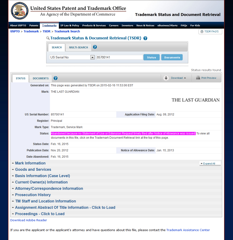 Nieuws: [Upd. 2] Handelsmerk Last Guardian vernieuwd