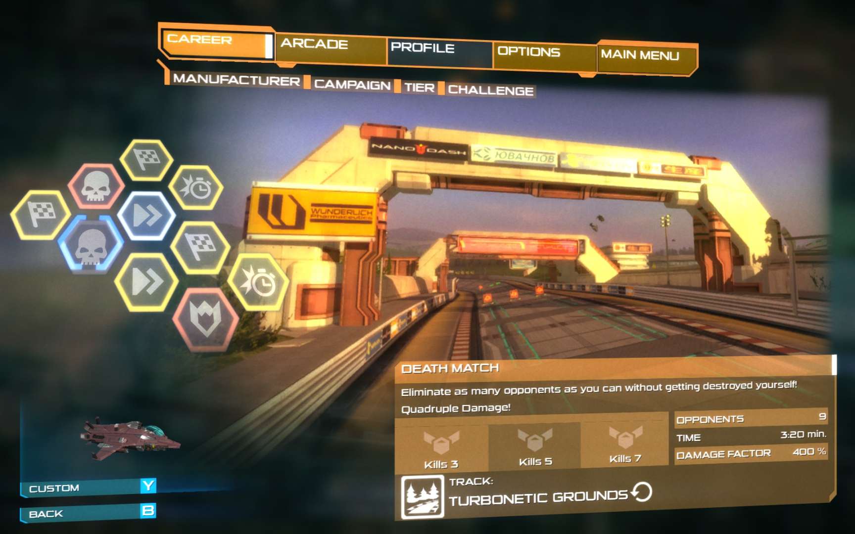 Quantum Rush begon als een gratis te spelen online titel, Champions is daarentegen een singleplayer versie. Dit betekent ook dat er een duidelijke scheiding is tussen de twee titels, een online portie zul je in deze game bijvoorbeeld niet aantreffen. Aangezien ik de online versie nooit heb gespeeld voelde dit als een aderlating, iets wat te vergeven is als deze singleplayer uitgave voldoende weet te bieden. Het hoofddeel wordt gevormd door een campagne, waarbij je uit drie racefabrikanten kunt kiezen, ieder met hun eigen statistieken. De game verandert niet echt door de keuze die je maakt, enkel je racepod reageert op een andere wijze, hetgeen je weer uit kunt breiden met aanpassingsopties.