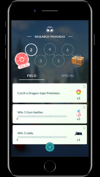 In de update verschijnen ook Field Research, een andere benaming voor dagelijkse opdrachten. Deze verkrijg je nabij Pokéstops en bevatten lastigere uitdagingen waar je dan ook weer een grotere beloning voor krijgt. Tevens is er een ander type onderzoek, de Special Research genaamd. Dit type opdrachten draaien rondom Professor Willow en hij zal je begeleiden in een pad der ontdekking. Je kunt deze zo vaak op een dag aan gaan als je wilt, echter verdien je er maar één stempel per dag mee. Lukt het je om zeven van deze stempels te verzamelen dan verdien je een Research Breakthrough, hetgeen gelijk staat aan betere verdiensten.