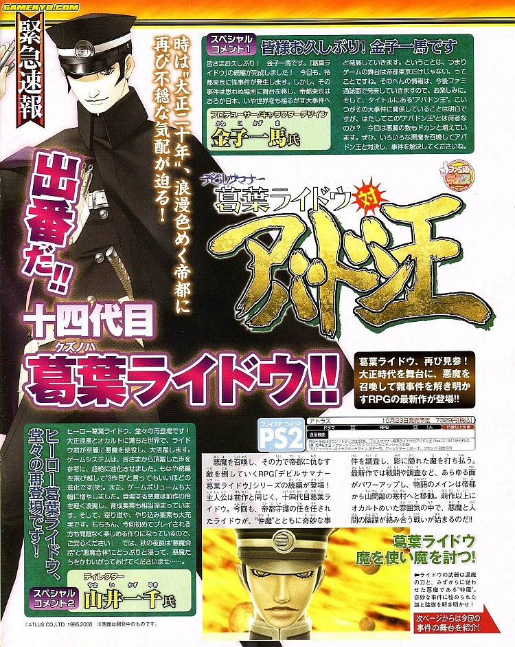 Een week geleden beloofde Atlus een nieuwe aankondiging in de Shin Megami Tensei serie. Met Shin Megami Tensei: Devil Summoner: Raidou Kuzunoha Vs King Avadon heeft men vandaag een nieuwe PlayStation 2 titel aangekondigd.