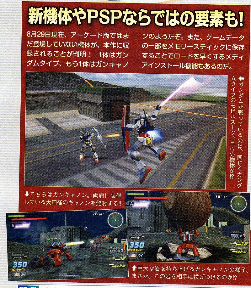 Op de PlayStation Portable scoort elke Gundam titel. Namco Bandai port daarom de arcadetitel Mobile Suit Gundam: Gundam vs. Gundam naar de PSP. De game bevat een singleplayer en een offline multiplayer voor vier personen. Gundam vs. Gundam gebruikt omgevingen en geluid uit de verschillende series. De game laat toe om een deel van de game op de geheugenkaart te plaatsen om de laadtijden te verminderen.