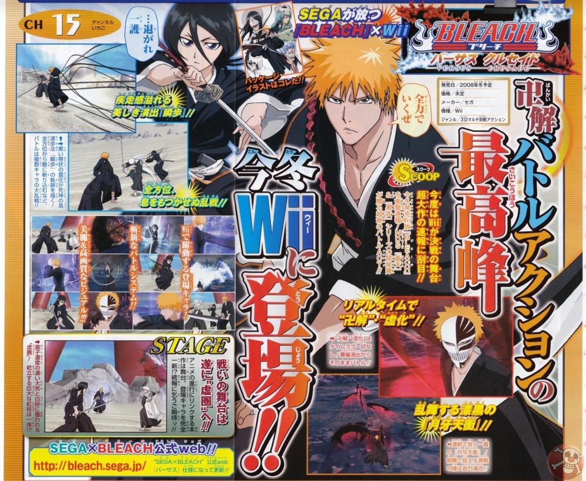 Met Bleach Versus Crusade maakt Treasure wel de overstap van de DS naar de Wii. De game bevat multi-battle actie, een online multiplayer en veel Arrancar. Op de officiële site, die pas aan het einde van de maand volledig opengaat, zijn reeds enkele speelbare personages zichtbaar namelijk Kurosaki Ichigo, Kuchiki Rukia, Nnoitra Jiruga, Grimmjow Jeagerjaques, Neliel Tu Oderschvank en Ulquiorra Schiffer. De game lijkt zich dus te concentreren op de Arrancar Arcs.