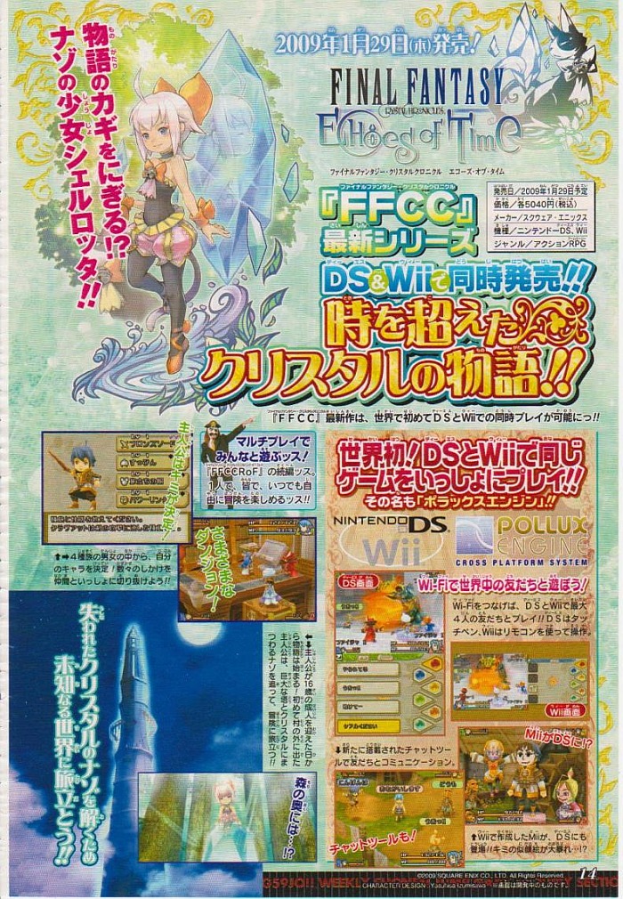 Nu krijgen de DS en de Wii opnieuw een vervolg met Echoes of Time. In Echoes of Time volg je het verhaal van Charlotta in een queeste waarin een mysterieus kristal centraal staat. Op beide platforms verschilt de gameplay, maar je kunt personages overzetten en samen online spelen dankzij de Pollux Engine. De game ligt op 29 januari in de Japanse winkels.