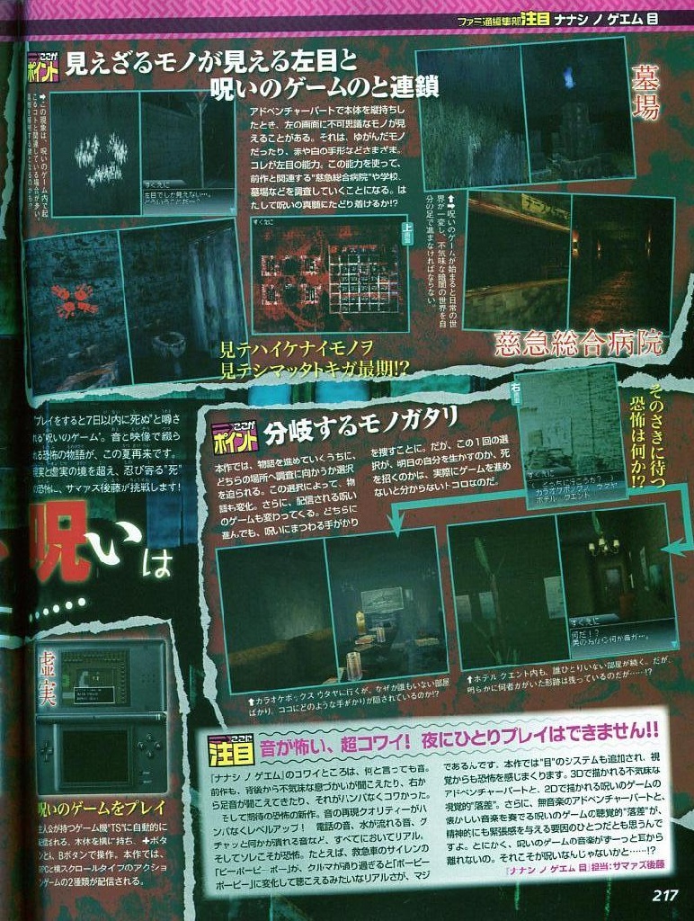 Met Nanashi no Game ontwikkelde Square-Enix een Japans horroravontuur waarin je een Ring-achtig avontuur beleeft. De game draait rond een mysterieuze RPG die je moet uitspelen binnen zeven dagen of je sterft. Nu ontwikkelt Square-Enix een vervolg voor de game. Het vervolg heet Nanashi no Game 2 en verschijnt op de DS.