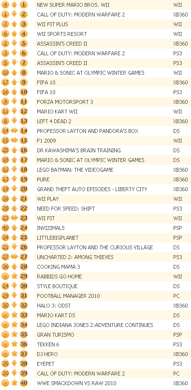 De game opent meteen op de eerste plek in de top 40 in het Verenigd Koninkrijk. Modern Warfare 2 moet het met een tweede plaats doen. De top 5 wordt afgesloten door Assassins Creed 2.