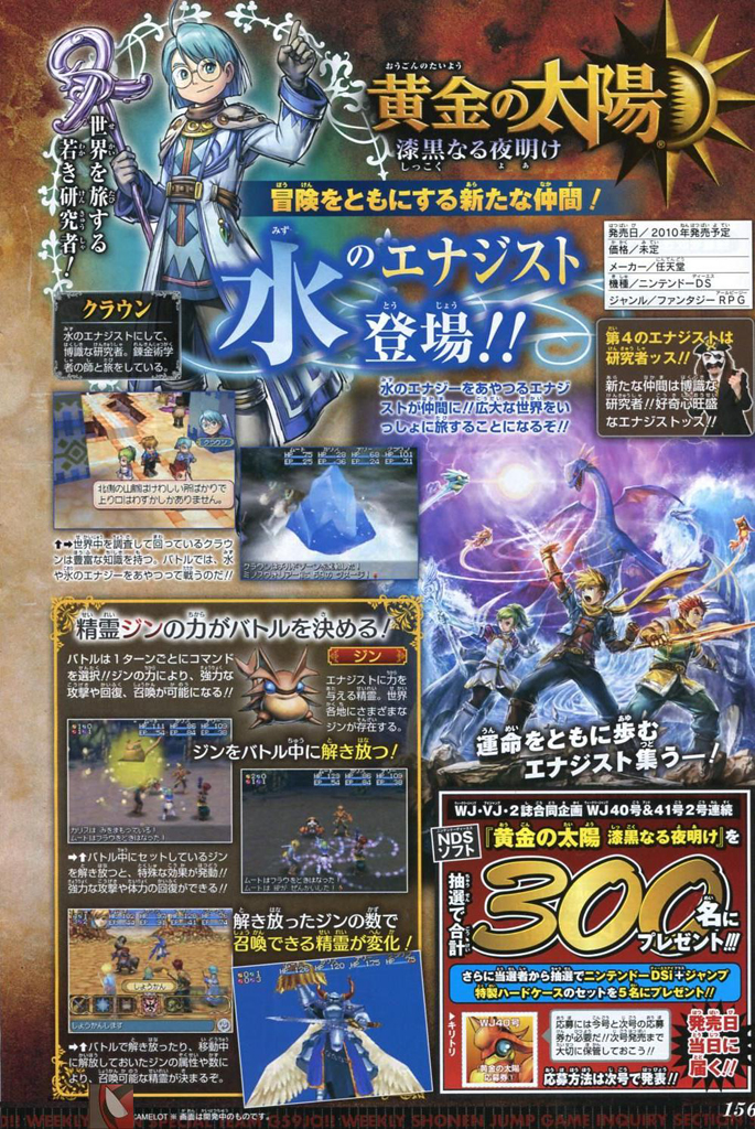 De verrassing op de E3 2009 voor de Nintendo DS: Golden Sun: Dark Dawn. In het vervolg op de twee GBA-delen nemen we Matthew onder de knoppen, de zoon van Isaac, de held uit het eerste deel. Matthew trekt samen met zijn vrienden de wereld in om op onderzoek uit te gaan naar de vreemde zwarte gaten welke de Psynergy uit de wereld trekken.
